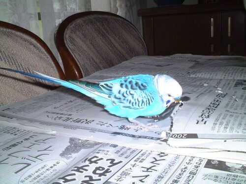 本日「大掃除」。(*^_^*) ◆毎朝の掃除は、下敷きの「新聞」と「飲料水」の取替えだけなんだが、本日は(止まり木)(名札)(ピーちゃん)なんかを外して、水洗い。◆(そら)が窓ガラスまでやって来て、不思議そうに見ていた。・・・分かってるのかな?^…