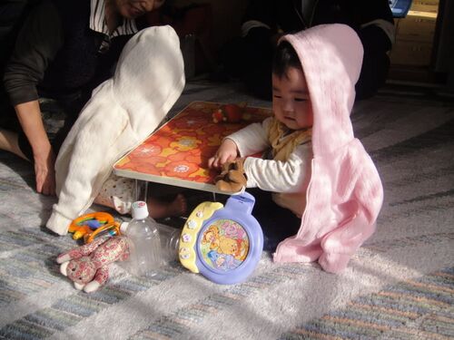 【咲妃(さき)の日記より】 ◆今日は、お母さんが急な用事で、朝から会社へ出かけたので、麻衣(まい)ちゃんと私は、お爺ちゃん!ち(家)で遊ばせてもらいました。(*^_^*) ◆朝の「離乳食」も、お爺ちゃん!お婆ちゃん!に食べさせて貰い、いっぱい遊んで…
