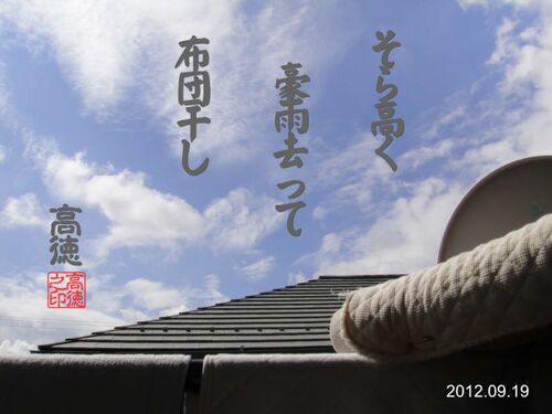 ▼白い綿みたいな雲が多かったが! 今日は久しぶりにエエ天気だった。(*^_^*)・・・しかし!今日は娘(孫の親)がお休みで、早朝の(孫守り)はなし!。 ▼で!さっそく、布団干し!と部屋の虫干し!。・・・今朝は蟻の被害は無しで快適に過ごせた。(笑)! …