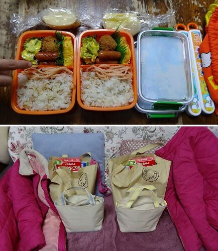 ▼そうです、今日は 先週「土曜日」出校の代休で、学校は お休みでした。 ・・・じゃが、(お二人さん!)達は 弁当を持って 「学童」です。 婆さん!の昔風?の弁当で、今流行の「キャラ弁」ではありません。 ・・・お一人様、手提げ袋2個(お弁当と 学習用…