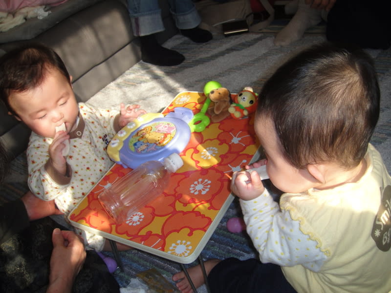 ◆麻衣ちゃん!は、会場のお姉さん!達の顔を見て、大泣きしました。咲妃は泣かなかったです。・・・麻衣ちゃん!は、初めての人と逢うと、いつも大泣きするな~!と、お爺ちゃん!が怒っていました。^^(笑)!